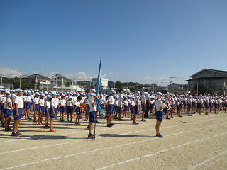 全校体育・・・・。今日は開会式の練習をみんなで行いました。子供たちはさまざまな指示をしっかりきき、練習を重ねていました。たくさんのがんばりが見れました。