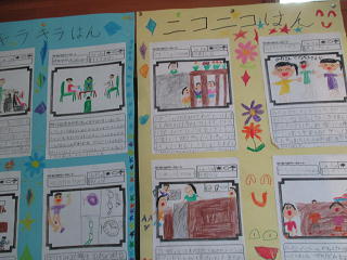 商店街を見学・・・その様子を絵と文章にまとめています。