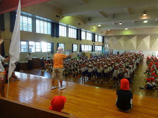 各団の色が決まった後、団長のリードで団のみんなが大きな声を上げ、団の結束を固めました。どの団も熱く燃えていました。6年生のリードする運動会が楽しみです。