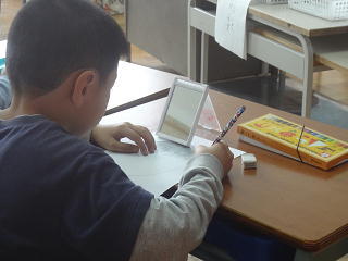 自分の顔と向かい合い描いていました。どんな自画像が完成するか楽しみです。