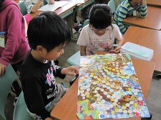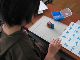 今日は雨。昼休みは教室で過ごした子ども達です。算数セットで楽しそうに遊んでいました。