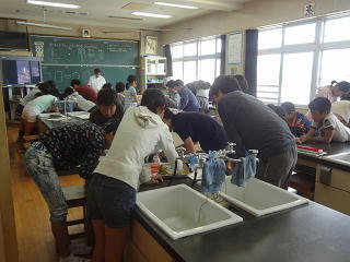 植物の水の取り入れ方の観察を行っていました。顕微鏡を使ったりして興味しんしんの様子でした。