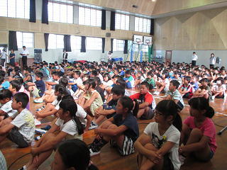 校長先生から大切なお話がありました。映像を交えたお話にみんな真剣に耳を傾けていました。