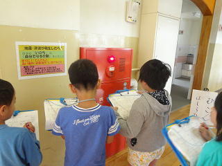 校内の防災設備等について校内地図を頼りにグループごとに調査していましたよ。自分たちで校内のさまざまな設備をみつけ、みんで考えたり、発見したりしながら災害の備えについての理解を深めていましたよ。