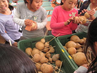 理科の時間に育てたひょうたんを収穫し、なにやら作ってます。何ができるか楽しみです。