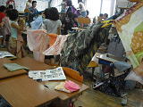 おうちから持ってきたさまざまな布を組み合わせて、教室をかざっていました。・・・みんなであれこれ知恵を出し合いながら・・・飾り付け・・・・。笑顔と笑いがあふれていました。楽しくてたまないようでした。