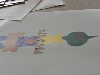 紙を切り抜いて・・・次のプロセスへ向かいます。面白い手法ですね。出来上がりが楽しみです。