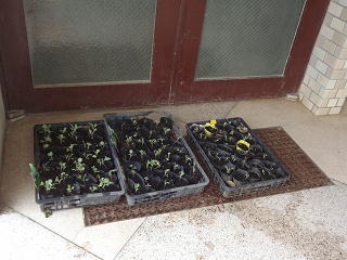 苗を動かしたり・・・、花壇の支柱を固定したり・・・等、みんなで台風に備えました。