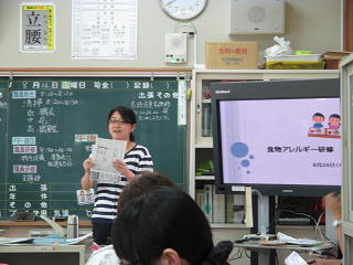 本校栄養教諭によります食物アレルギーについての研修が行われました。本校職員は特に給食について多様な観点から考えを深めました。