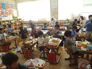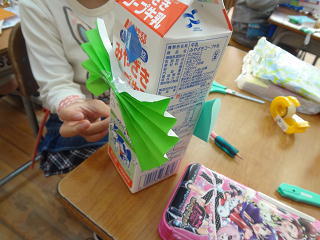 プレゼントを作っていましたよ。だれにあげるのでしょうね?