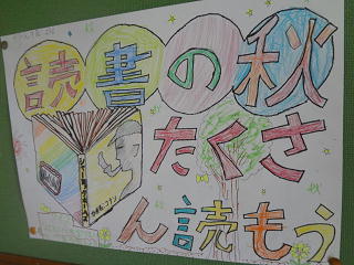 図書委員会のみなさんは、ポスターを作製!全校児童のみなさんが本に親しむように・・・・と「読書の秋」を呼び掛けています。