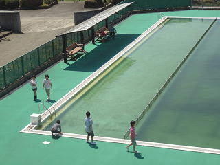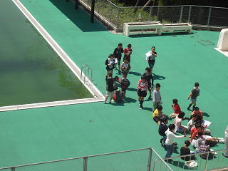 プール周辺の生き物や植物の観察を行っていました。興味しんしんの様子でした。
