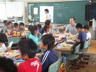 6年生が1年生をしっかりとサポートして、給食の準備を行っています。1年生は静かに待っていましたよ。・・・そしてみんなで美味しくいただいていました。