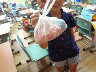 登校班で元気に登校!友達を見つけて駆け寄っていました。