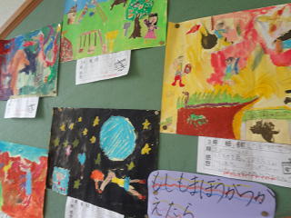 中央階段には3年生の夢あふれる絵が掲示してあります。明日の参観日でじっくりご覧ください。