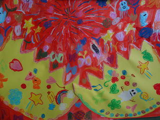卵が割れて、夢いっぱいのものが飛び出してきています。楽しい作品の数々!