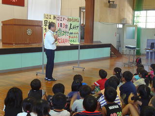 3人の先生方から楽しく夏休みを過ごすための大切なお話がありました。みんな真剣に受け止めていたようです。