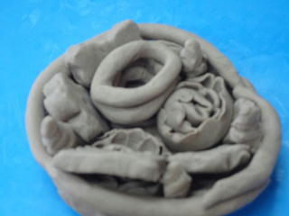 5年生は、今、紙粘土で入れ物づくりに挑戦中です。