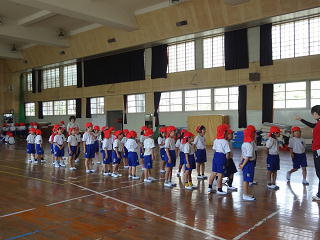 授業の後の整列・・・すばやくできるようになっています。