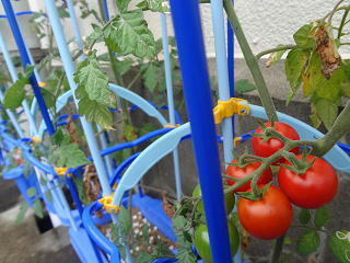 自分で選び、育てている野菜・・・。トマトが色づき始めました・・・・。子供たちは嬉しそうです。