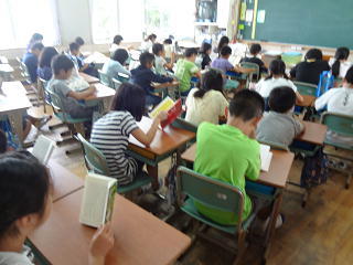 全校児童みんなで取り組んでいます。それぞれの選んだ本の世界に引き込まれているようです。