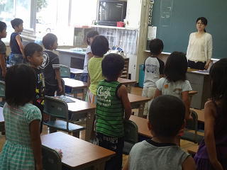 そして「今、もういつでも2学期が始まってもよい人?」の投げかけにたくさんの子供たちが、はりきって手を挙げていました。