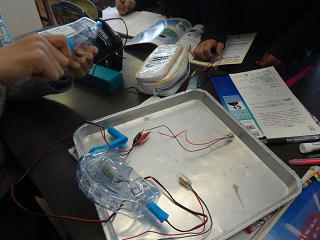 電球をつける実験!みんな夢中でした。明るくつくたびに歓声が上がっていました。