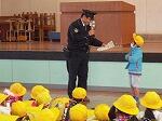 1月10日の110番の日にちなんで、新富交番の警察官の方や地域の方、役場の方などが交通安全指導に来てくださいました。交通安全の願いのこもった「赤」「黄」「青」三色のかわいいお餅をいただいて、見守っていただきながら一緒に下校しました。