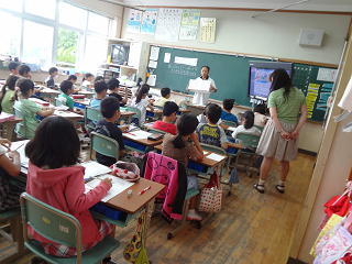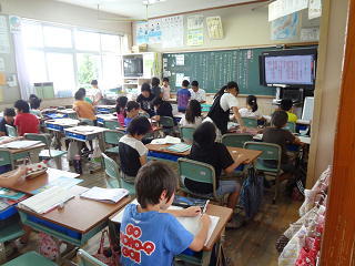 電子黒板を使った授業に子供たちは積極的に活動をしていました。