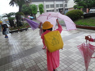 色とりどりの傘・・・。雨対策をしての登校!雨音に負けない元気のよいあいさつが響いていました。