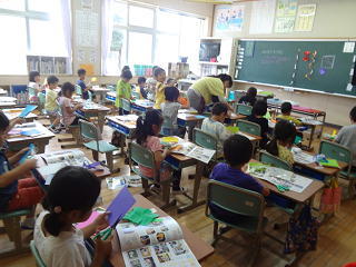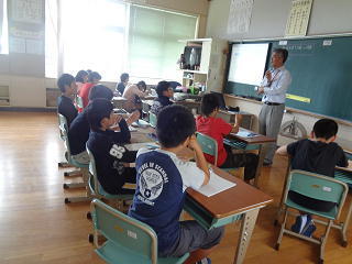 鬼付女地区集会場近くの池では、蓮を観察しました。みんな興味しんしん!