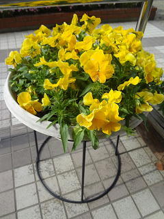 鮮やかな黄色いパンジーがみんなを出迎えます。