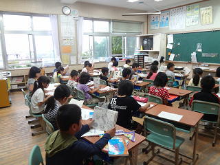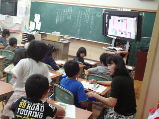 電子黒板を使った授業と先生の丁寧な説明・・・。みんな集中して学習をすすめていました。