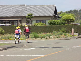 本校職員は、家庭訪問期間、地域に出て、下校指導を行ったり、各家庭を訪問しながら地域の子供たちの様子を見守っています。