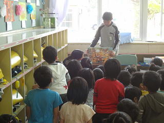 朝の時間の1年生への読み聞かせ・・・。本日担当の6年生は入念な打ち合わせを行って本番に臨んでいました。