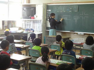 担任の先生から、黒板に図を描いての交通安全についての注意等がありました。