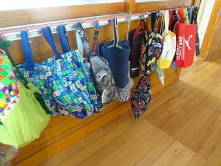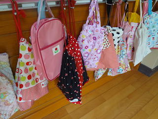 シューズを入れたり、小物を入れたり・・・。廊下には色とりどりの袋が並んでいます。