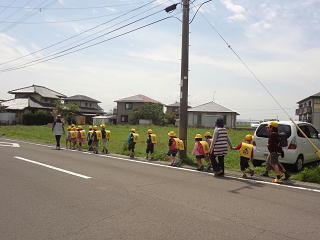 子供たちの命を守るために、職員で子供たちの下校の様子を見守りに行きました。道路への飛び出しはないか・・、安全確認は行われているか・・・、安全な歩行ができているか・・等について注意して見届けました。