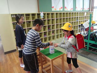 1年生に消毒の仕方を教えたり、教室で提出物のお世話をしたり・・・大活躍です。