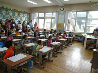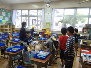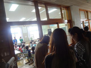 入学して初めての参観日!保護者の方々は心配そうに子供たちを見守られていました。子供たちは、はじめは緊張していましたが・・・だんだんいつものように活発に活動していました。授業が終わると、保護者の方を見て嬉しそうに合図を送ったり、手をふったりしていました。