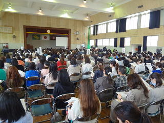 総会の後は各クラスで懇談会がありました。担任の先生からクラスの経営方針等のお話があり、保護者の方々は真剣なまなざしで耳を傾けられていました。