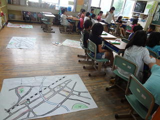 新富町の地図を自分たちで作ろうとしています。意欲的に取り組んでいました。