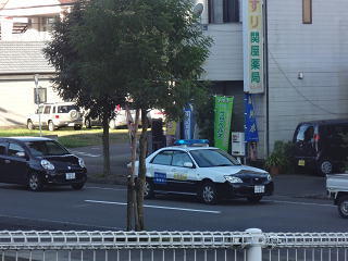 子供たちの登校を見守る青パト登場!みんな元気にあいさつを交わしていました。