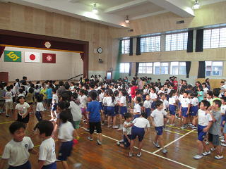 朝の活動で集会活動が行われました。集会委員会の子ども達が楽しいダンスで盛り上げていました。
