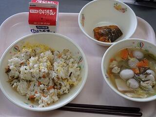 2月2日の給食は、麦ごはん、牛乳、サケの塩焼き、ホウレンソウのピーナッツ和え、のっぺい汁でした。
