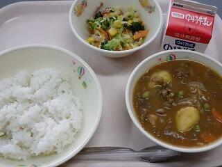 1月28日の給食は、麦ごはん、牛乳、ビーフカレー、ごまドレッシングサラダでした。