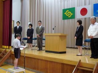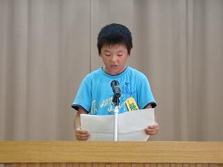 子ども達の作文発表では、1・3・5年生の代表の子どもが、2学期に努力したことや来年頑張っていきたいことなどをステージの上で発表しました。