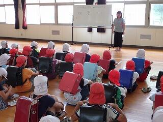 4月26日(火)に、連休前の交通安全学習が行われました。上学年(4~6年生)の子ども達は、安全な自転車の乗り方について確認しました。