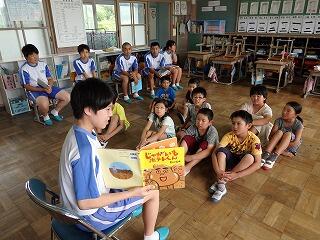 5月13日(金)の朝の時間に、ボランティアグループ「赤ずきん」の方による読み聞かせが行われました。やっぱり、子ども達は絵本が大好きです。