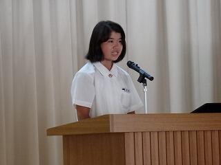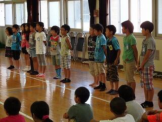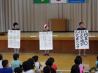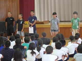 新任式の後、始業式が行われました。4・5・6年生の代表児童が、1年間の目標などについて発表しました。